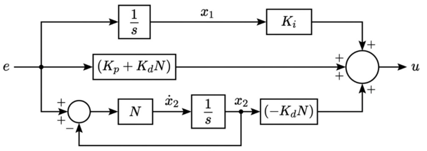 PID-Control (with Derivative Filter) in State Space FormatΒΆ